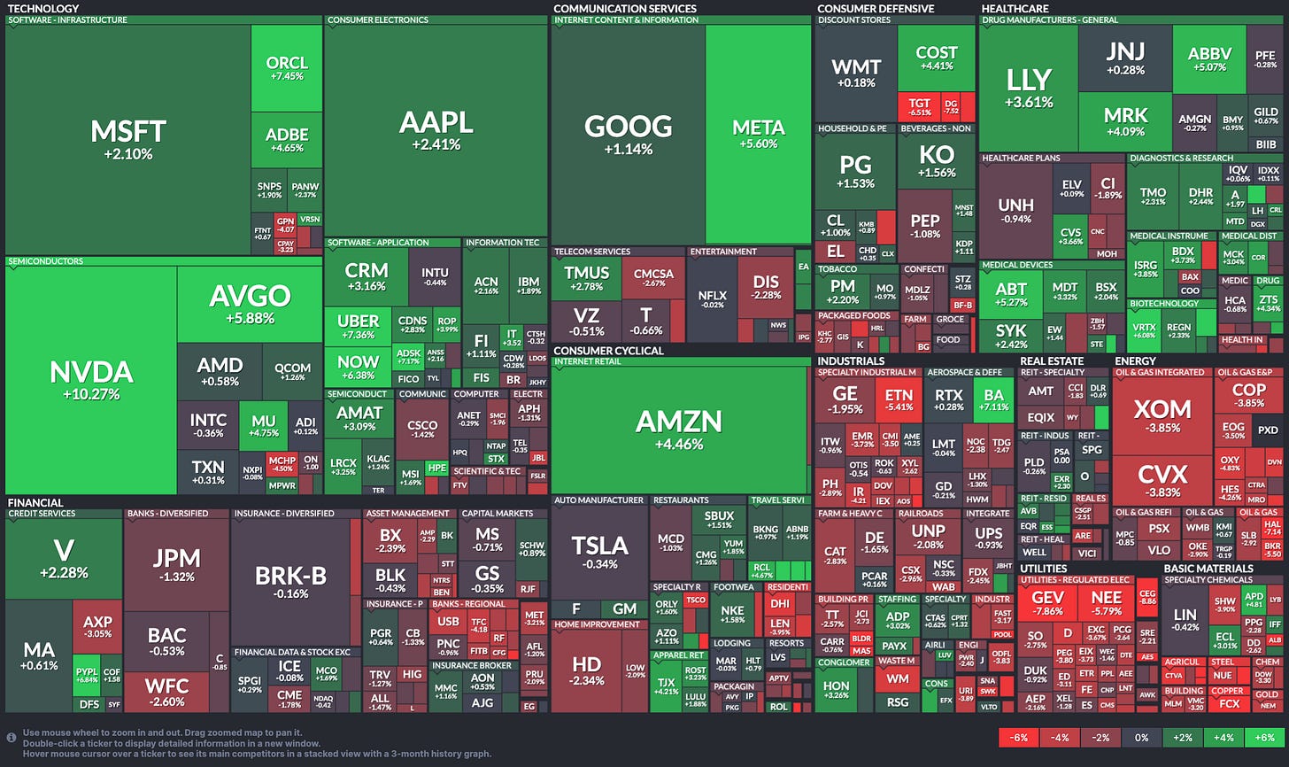 There was a lot of green on the screen on Wednesday partly as a bit of a delayed reaction to Tuesday’s pro-Fed-interest-rate-cut JOLTS data and partly on the back of a rather surprising actual rate cut from the Bank of Canada (BOC), the first of the big global central banks to start an interest rate reduction cycle. Business borrowing conditions continued easing as Treasury interest rates fell for the fifth day in a row and stocks sprang sharply back into all-time record high territory again for both the S&P 500 and the NASDAQ.