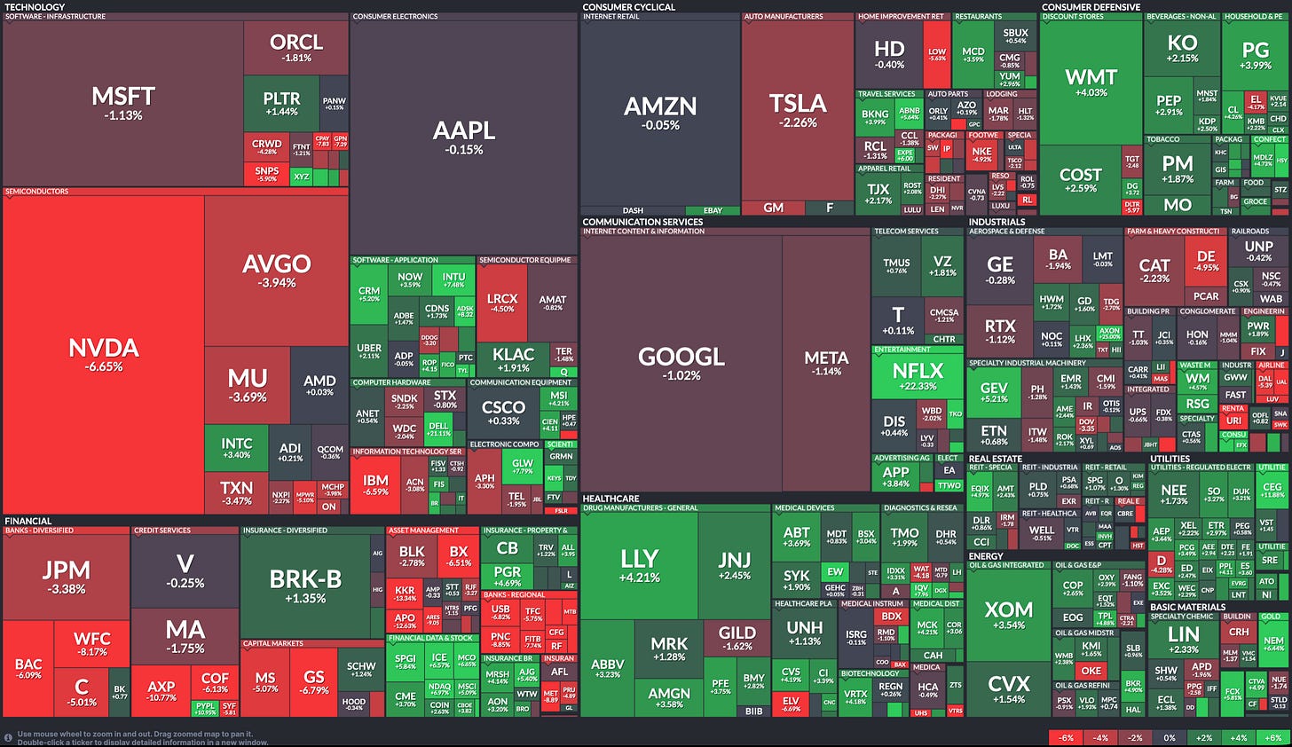 Last week’s worst performing US sector: Financials (two biggest holdings: Berkshire Hathaway, JPMorgan) ⬇︎ 2.0% for the week