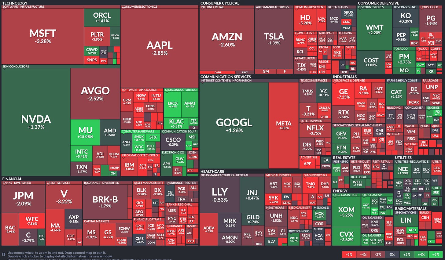 Last week’s worst performing US sector: Financials (two biggest holdings: Berkshire Hathaway, JP Morgan) ⬇︎ 3.3% for the week
