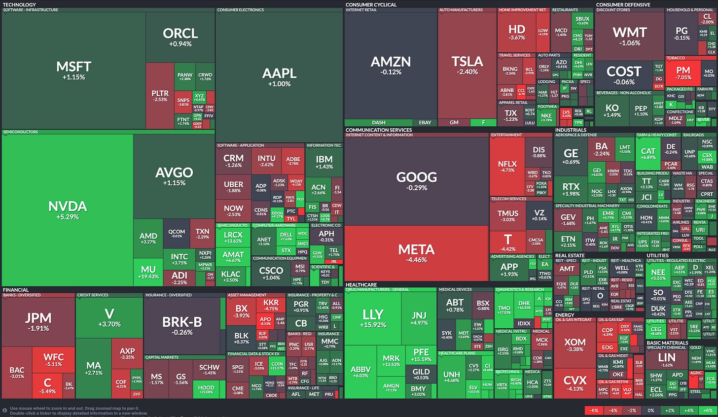 Last week’s best performing US sector: Healthcare (two biggest holdings: Eli Lilly, Johnson and Johnson) ⬆︎ 6.9% for the week