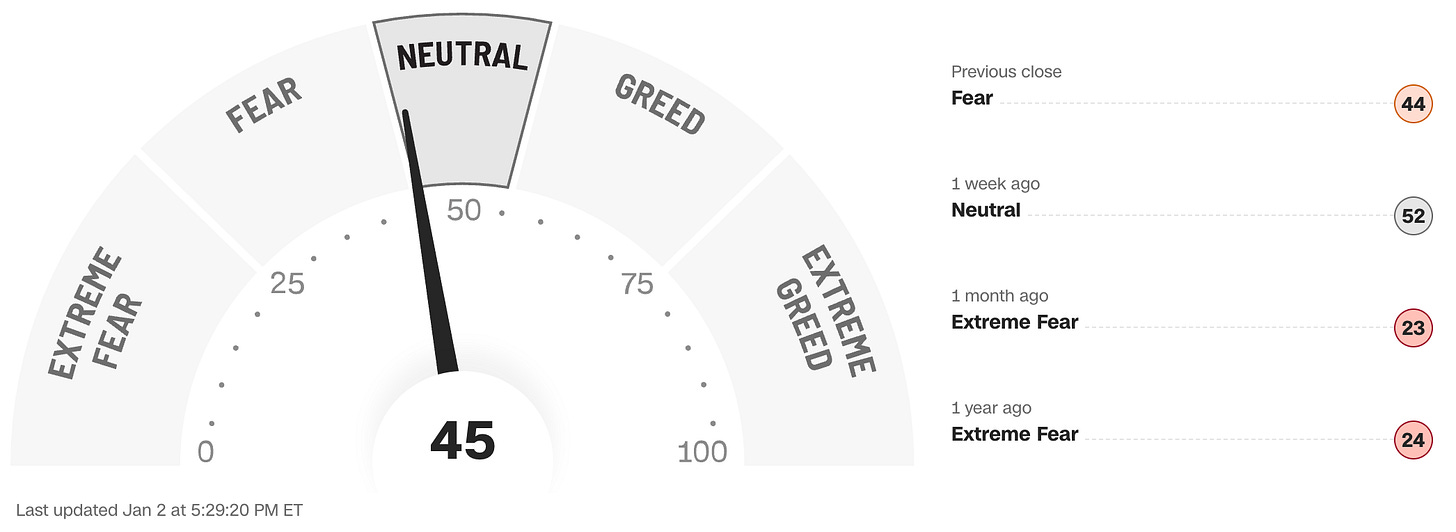 The Fear & Greed Index from CNN Business can be used as an attempt to gauge whether or not stocks are fairly priced and to determine the mood of the market. It is a compilation of seven of the most important indicators that measure different aspects of stock market behavior. They are: market momentum, stock price strength, stock price breadth, put and call option ratio, junk bond demand, market volatility and safe haven demand.